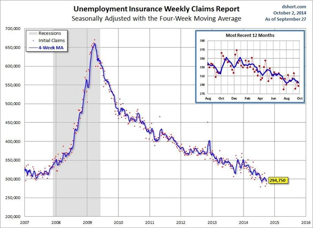 Počet nových žádostí o podporu v nezaměstnanosti v USA v týdnu do 27. září klesl o 8 tisíc na 287 tisíc. Čekal se růst na 297 tisíc z 295 tisíc v předchozím týdnu (revidováno z 293 tisíc). Čtyřtýdenní průměr nových žádostí klesl na 294 750 z 299 tisíc (revidováno z 299 750). Počet pokračujících žádostí klesl v týdnu do 20. září na 2,398 milionu z 2,439 milionu. Očekával se růst pokračujících žádostí na 2,452 milionu.