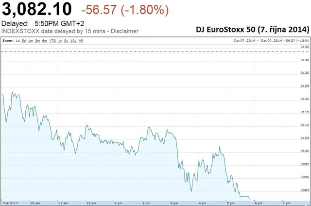 Britský FTSE 100 odepsal 1,04 %, francouzský CAC 40 1,81 % a německý DAX 1,34 %. Regionální Stoxx Europe 600 ztrácel 1,5 % a všechny jeho sektory se pohybovaly v červených číslech. Kolem půl procenta odevzdal sektor základních materiálů a automobilky, o více než dvě procenta se naopak propadly sektor zdravotní péče a technologie.
