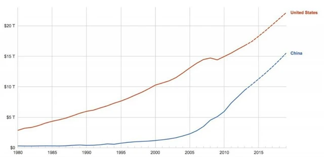 Na základě hrubých dat o HDP, jen přepočtených podle tržního měnového kurzu, má však USA stále solidní náskok několika bilionů dolarů.