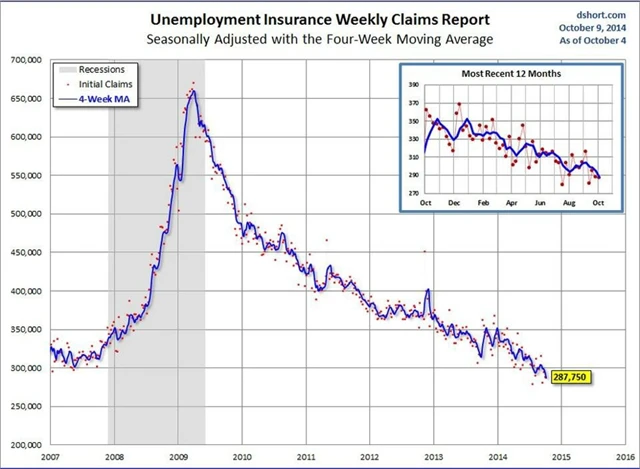 Počet nových žádostí o podporu v nezaměstnanosti v USA v týdnu do 4. října klesl o jeden tisíc na 287 tisíc. Čekal se růst na 294 tisíc z 288 tisíc v předchozím týdnu (revidováno z 287 tisíc). Čtyřtýdenní průměr nových žádostí klesl na 287 750 z 295 tisíc, nejníže od února 2006 (revidováno z 294 750). Počet pokračujících žádostí klesl v týdnu do 27. září o 21 tisíc na 2,381 milionu z 2,402 milionu (revidováno z 2,398 milionu). Očekával se růst pokračujících žádostí na 2,410 milionu.