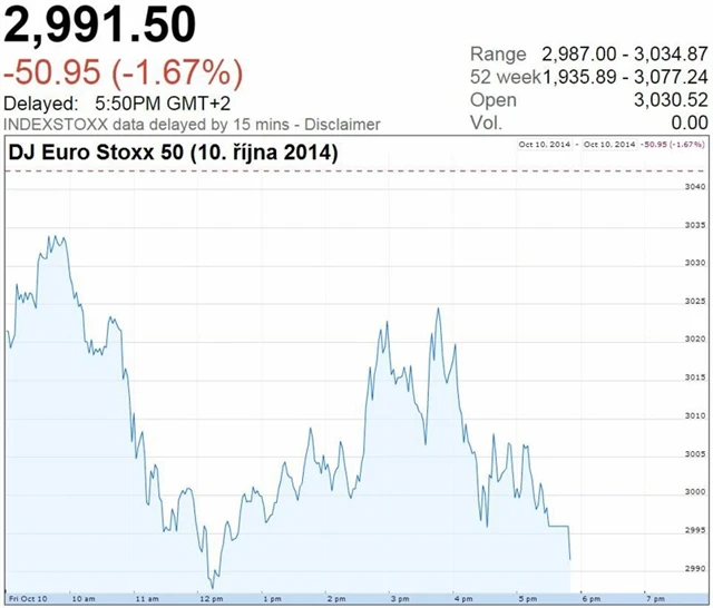 Náladu investorů tento týden negativně ovlivnila série slabých hospodářských údajů z Německa, které je největší evropskou ekonomikou. Akcie tlačí dolů rovněž rozhodnutí Mezinárodního měnového fondu zhoršit výhled světové ekonomiky pro letošní i příští rok a rostoucí obavy ze smrtícího onemocnění ebola.