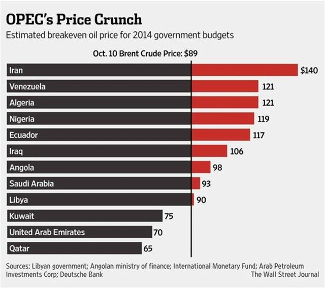 Zde je přehled cen ropy, které je rozhodující pro dodržení naplánovaných rozpočtů členských zemí OPEC.