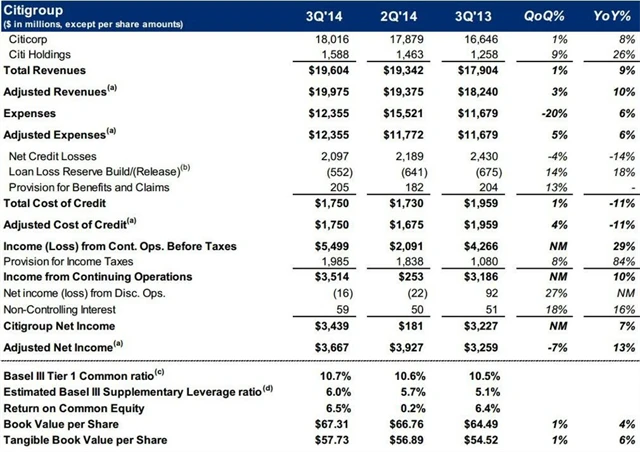 Americké skupině Citigroup, která je třetí největší bankou ve Spojených státech, stoupl ve třetím čtvrtletí očištěný čistý zisk o 13 % na 3,7 miliardy dolarů. Banka uvedla, že jí pomohly zejména lepší výsledky u problematických aktiv, která po sobě zanechala finanční krize. Společnost mimo to sdělila, že ukončí činnost v oblasti drobného bankovnictví v České republice a na deseti dalších světových trzích.