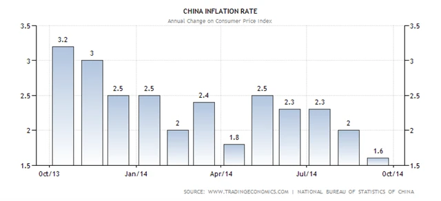 Spotřebitelská inflace v Číně je nejnižší od ledna 2010. Ekonomický růst země zpomaluje