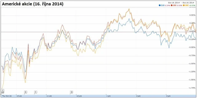 Americké akcie zahájily čtvrteční obchodní seanci opět výrazným poklesem, později ale převážnou většinu ztrát smazaly a dva ze tří nejsledovanějších indexů se nakonec přehouply přes nulu. Trh během dne dále tížily obavy z dopadů slabé světové ekonomiky na Spojené státy, k čemuž se přidávalo znepokojení ze šíření eboly na americkém území. Podporu naopak trhy nalezly v příznivých údajích z americké ekonomiky.