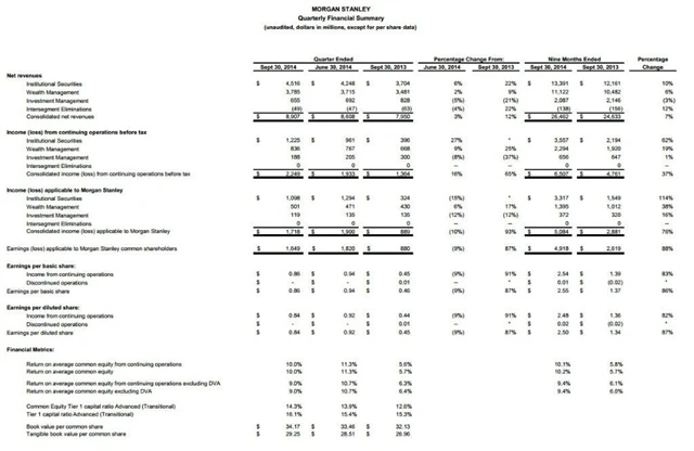 Morgan Stanley je další přední americkou bankou, která tento týden zveřejnila výsledky hospodaření. Zprávy byly zatím spíše smíšené. Banka JPMorgan Chase & Co zaostala za očekáváním analytiků, výsledky Wells Fargo byly v souladu s očekáváním a Citigroup a Goldman Sachs očekávání analytiků překonaly.