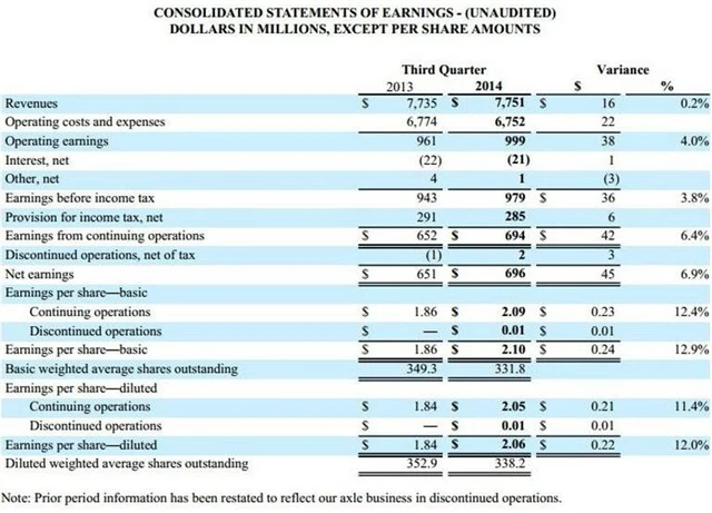 Výsledky General Dynamics ve 3Q: Zisk na akcii 2,05 USD (odhad: 1,91 USD), tržby vzrostly na 7,75 miliardy USD ze 7,74 miliardy před rokem Redakce IW22. 10. 2014 | 13:16Výsledková sezónaZdroj: BloombergAmerické akcieVýsledková sezónaRedakce IW Další články autoraAkciový býk pádí vyspělými trhy. A není to jen americké témaTOP 10 článků týdne: Vize Nvidie, americké akcie a víra ve zlatoOčekávané výsledky světových firem v týdnu od 3. listopadu: McDonald’s, Palantir, Ryanair, BMWDoporučujemeNestihli jste naskočit do zlaté rally? Vůbec není pozdě, říká stratégZlatoRychlé peníze ve velkém opustily zlato a stříbro. Trh se připravuje na další růstZlatoAuto jako služba: Operativní leasing stále více láká domácnostiFinanční sektor Aktualitydnes | 0:00Co musíte dnes vědět (3. listopadu): Kdo je spokojený ve vlastní zemi?2. 11. | 22:14Čínský prezident podle Trumpa slíbil, že za jeho pobytu v Bílém domě nepodnikne žádné kroky vůči Tchaj-wanu2. 11. | 18:43OPEC+ v prosinci zvýší těžbu ropy o dalších 137 tisíc barelů za den2. 11. | 15:15Hampl: Zestátnění ČEZ je drahý nesmysl, prostor pro snižování daní vláda mít nebude2. 11. | 9:31Akciový býk pádí vyspělými trhy. A není to jen americké téma1. 11. | 17:00Buffettův indikátor je fake news. Drahé americké akcie mají logiku1. 11. | 15:24Buffettova Berkshire Hathaway v kvartálu výrazně zvýšila zisk, v hotovosti má už 381 miliard dolarů1. 11. | 14:07Dálniční boom v Česku: Vzniká prostor pro nová průmyslová centra, mapa české logistiky se mění1. 11. | 10:55Nová starost pro trh s drahými kovy: Čína zrušila daňové zvýhodnění pro obchodníky1. 11. | 9:37Kolik budou v roce 2026 platit OSVČ na paušální dani?31. 10. | 21:30Závěr týdne se na amerických burzách vydařil. Investoři sčítají zisky za pátek, týden i celý měsíc31. 10. | 18:00Evropské akciové indexy v pátek klesly. V týdenním horizontu se na směru neshodly, říjen už ale pro ně byl ziskovýZobrazit všechny aktuality Nejčtenější tento týden1.Nestihli jste naskočit do zlaté rally? Vůbec není pozdě, říká stratég2.Rychlé peníze ve velkém opustily zlato a stříbro. Trh se připravuje na další růst3.Auto jako služba: Operativní leasing stále více láká domácnosti4.Čtyři důvody, proč po korekci nakupovat akcie evropských zbrojovek5.Buffettův odkaz: Trpělivost jako klíč k investičnímu úspěchu6.Modlitba pasivního investora a jak podle expertů (ne)investovat v celní bouři Sledujte násinvesticniweb.cz14000Investiční web19300LIVE2300Investiční web1000investicni_web500Investicniweb.cz33600