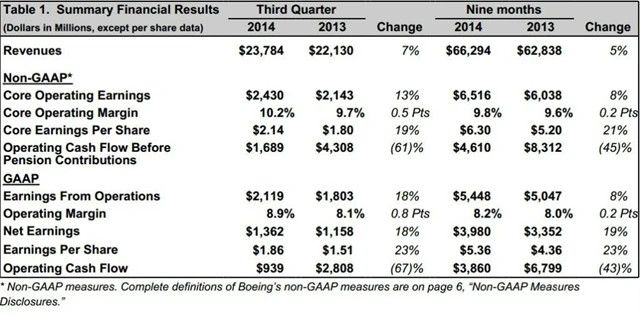 Americký výrobce letadel Boeing ve třetím čtvrtletí zvýšil čistý zisk o 18 % na 1,36 miliardy dolarů a opět zlepšil odhad celoročních zisků. Firma uvedla, že zlepšením výhledu reaguje na rostoucí poptávku po dopravních a nákladních letadlech.