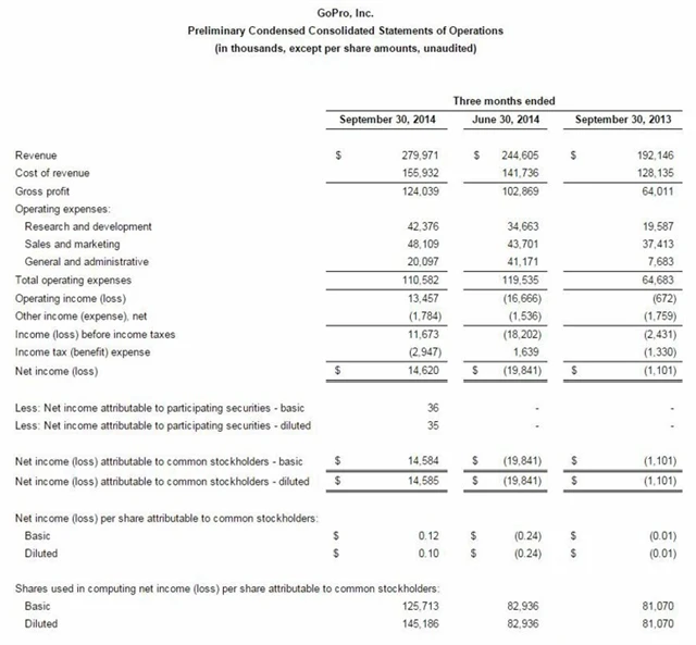 - Výsledky GoPro ve 3Q: Upravený zisk na akcii 0,12 USD (odhad: 0,08 USD), tržby 280 milionů USD (odhad: 265,6 milionu USD, loni: 192,1 milionu USD).