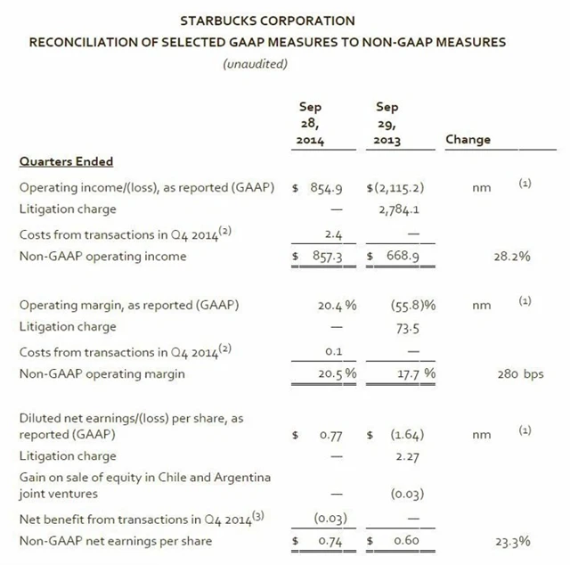 - Výsledky Starbucks ve 4QFY2014: Upravený zisk na akcii 0,74 USD (v souladu s odhady), tržby 4,18 miliardy USD (odhad: 4,23 miliardy USD).