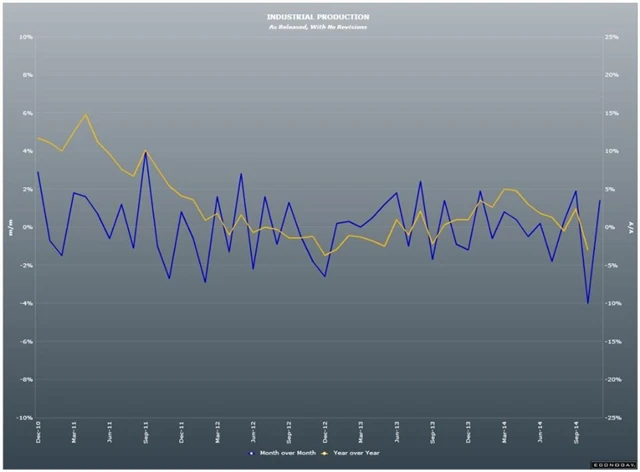 Produkce ve zpracovatelském sektoru se v září zvýšila o 1,7 %, produkce kapitálového zboží vzrostla o 4,5 % a výroba automobilů o 10,1 %. Produkce energií se zvýšila o 2,4 %, produkce ve stavebnictví však o 1,2 % klesla.