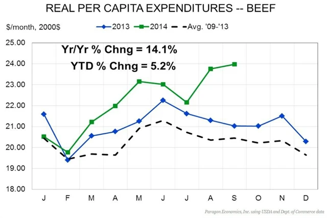 Jedna komodita, která v dnešní době rozhodně nepodléhá žádnému tlaku, je hovězí maso. Futures cena hovězího masa na CME v minulém týdnu dosáhla historického maxima a nezdá se, že by měla v nejbližší době klesnout. Vedle rostoucí poptávky po hovězím mase za rostoucí cenou stojí také období sucha v roce 2011 v Texasu a Oklahomě, které zdecimovalo celá stáda.