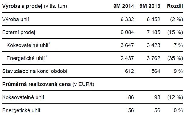 V roce 2015 neočekáváme žádné dramatické cenové pohyby v koksovatelném nebo energetickém segmentu. Produkční cíl pro příští rok máme v rozmezí 7,5 až 8 milionů tun. Detailnější plán představíme – spolu s dalšími nefinančními cíli – při prezentaci celoročních výsledků v únoru 2015.