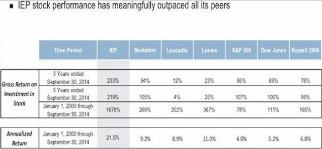 Za poslední tři roky zhodnotily akcie Icahn Enterprises o 233 % (v případě Berkshire Hathaway Warrena Buffetta to bylo jen 94 %, index S&P 500 vzrostl za tu dobu o 86 %). Od roku 2000 vylétly akcie Icahnovy firmy o 1 678 %.