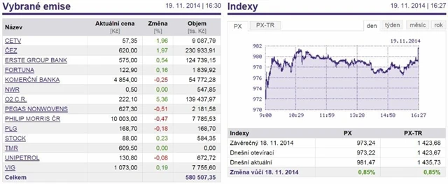 Index PX vzrostl o 0,85 % na 981,47 bodu.