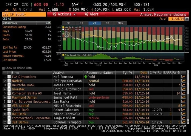 Credit Suisse zvýšila cílovou cenu akcií ČEZ na 532 Kč z 510 Kč, doporučení ponechává na "underperform" Redakce IW25. 11. 2014 | 9:22ČEZZdroj: BloombergPodívejte se na aktuální videoAkcie ČRČEZInvestiční doporučeníRedakce IW Další články autoraRolls-Royce SMR postaví první tři malé modulární reaktory v britské jaderné lokalitě WylfaEBITDA Footshopu za prvních devět měsíců roku narostl o 21 % na 104 milionů KčVIG zlepšila výhled celoročního zisku před zdaněním, čeká až 1,15 miliardy eur DoporučujemeBitcoin má za sebou stovky pohřbů, ale odmítá zůstat mrtvýBitcoinNervozita na Wall Street: Americké akcie zahajují čtvrtý rok býčího trendu učebnicově, situace připomíná rok 1998Americké akcieAI euforie žene index S&P 500 do extrémů. Bank of America radí, kam teď "schovat" penízeDiverzifikace investic Aktualitydnes | 14:48Prezident newyorského Fedu Williams vidí prostor pro další úpravu sazebdnes | 14:13Google: Poptávka po AI vyžaduje výrazné zrychlení budování výpočetní kapacitydnes | 13:56Propouštění v Amazonu zasáhlo hlavně inženýry, ukazují státní datadnes | 13:42Japonsko schválilo balíček ve výši 135 miliard USD na podporu ekonomikydnes | 13:21Futures na americké akcie: Dow +0,16 %, S&P 500 -0,25 %, Nasdaq 100 -0,58 %dnes | 13:17Technologické akcie směřují v roce 2025 k rekordnímu přílivu 75 miliard USDdnes | 12:46Úrokové sazby spotřebitelských úvěrů v říjnu mírně stouplydnes | 12:13Ceny ropy a energetických akcií v reakci na Trumpův mírový plán pro Ukrajinu prudce klesajídnes | 11:44Budoucnost retailu je v propojení e-shopů a kamenných prodejendnes | 11:20Ekonomická aktivita v eurozóně nadále rostednes | 10:52Společnost Foxconn na "Tech Day“ zdůraznila své rostoucí ambice v oblastidnes | 10:30Asijské trhy v pátek klesaly. A to v reakci na japonskou inflaci i vývoj na Wall StreetZobrazit všechny aktuality