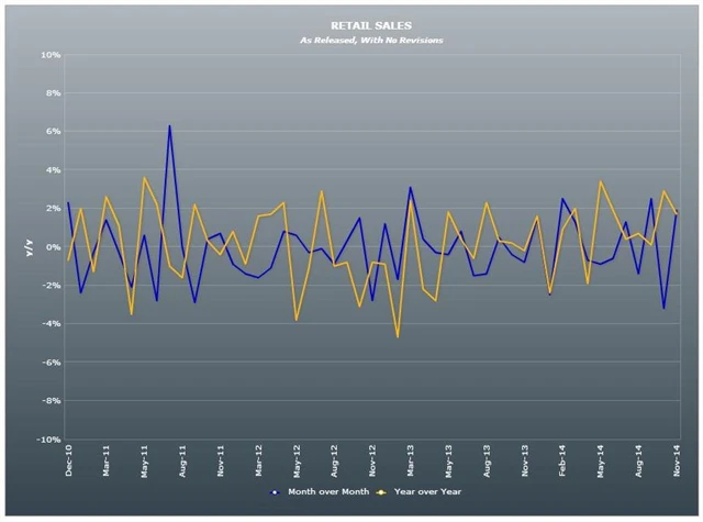 Tržby německých maloobchodníků se v říjnu zvýšily o 1,7 % meziročně a o 1,9 % meziměsíčně. Čekal se růst tržeb o 1,4 % meziročně a o 1,7 % meziměsíčně. V září se tržby meziročně zvýšily o 2,4 % (revidováno z +2,3 %), ale meziměsíčně o 2,8 % klesly (revidováno z -3,2 %).