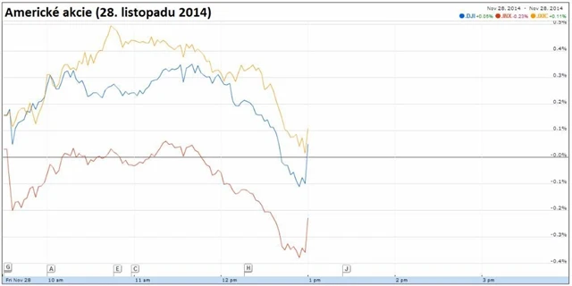 Americké akcie zahájily zkrácenou páteční obchodní seanci mírně v plusu. Poté se ale tři nejsledovanější akciové indexy rozdělily - Dow a Nasdaq zisky navyšovaly, zatímco S&P 500 klesl pod nulu. Aktivita na trzích ale byla poměrně slabá. Ve čtvrtek totiž burzy zůstaly kvůli oslavám Dne díkůvzdání zavřené a v pátek obchodování končilo o tři hodiny dříve.