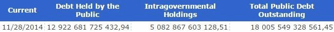 HDP na konci 3Q2014 byl 17,555 bilionu USD. Za vlády prezidenta Baracka Obamy se dluh zvýšil o zhruba 70 % (z 10,625 bilionu USD).