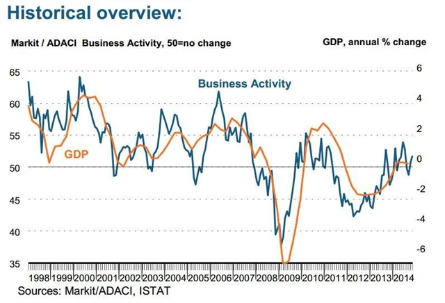 Aktivita sektoru služeb v Itálii v listopadu nečekaně výrazně zrychlila, index nákupních manažerů vyskočil na 51,8 bodu z říjnových 50,8 bodu, očekával se pokles na 50,2 bodu. Kompozitní index se zvýšil na 51,2 bodu z 50,4 bodu v říjnu, očekával se propad na 49,6 bodu. Podle pondělní zprávy agentury Markit naopak index sledující situaci ve zpracovatelském sektoru stagnoval na říjnových 49 bodech.