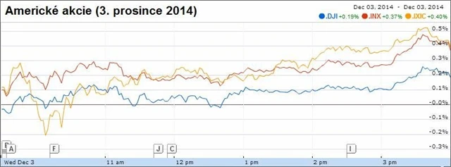Trh příliš nereagoval na údaje, podle nichž byl listopadový přírůstek počtu zaměstnanců v soukromém sektoru mírně pod očekáváním, ale zůstal nad hranicí 200 tisíc míst. Zrychlil naopak růst v americkém sektoru služeb. Údaje podle agentury Reuters naznačily, že globální útlum má na největší světovou ekonomiku jen omezený dopad.