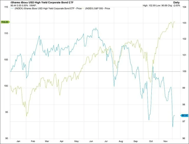 V několika posledních letech měli investoři jasno. Dokud se bude dařit ETF kupujícím dluhopisy s vysokými výnosy (high yield), porostou i ceny amerických akcií. Zhruba od poloviny října už ale nic takového neplatí a investoři se stále naléhavěji ptají, co se na trhu děje.