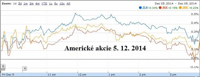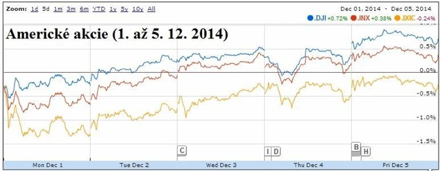 Index S&P 500 táhly v závěru týdne vzhůru především akcie finančních společností. Vyšší úrokové sazby, pro které by se Fed časem mohl rozhodnout, by totiž mohly znamenat vyšší zisky v odvětví. Spekulace, že Fed by sazby mohl zvýšit dříve, než se dosud na trzích předpokládá, podpořila zpráva amerického ministerstva práce, podle níž domácí ekonomika vytvořila v listopadu nejvíce pracovních míst za tři roky.