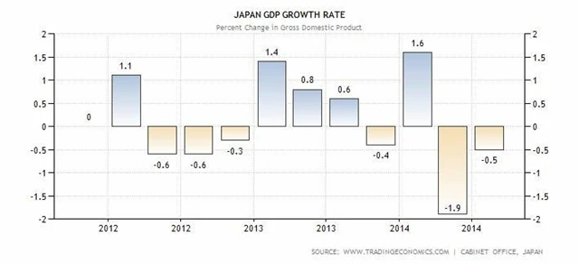 Japonskou ekonomiku podle expertů citelně zasáhlo dubnové zvýšení daně z obratu. Hrubý domácí produkt se od dubna do června snížil o 7,1 %. Byl to nejvýraznější pokles od prvního čtvrtletí 2009, kdy na Japonsko citelně dolehla globální hospodářská krize. V následujícím kvartálu ekonomika sklouzla do recese, kterou nová vládní data potvrdila.