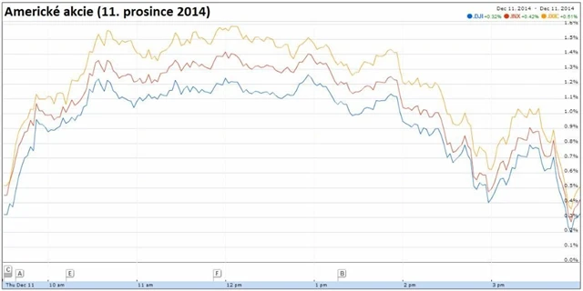 Americké akcie v první polovině čtvrtečního obchodování prudce posilovaly díky příznivým údajům o vývoji maloobchodních tržeb a situace na trhu práce ve Spojených státech, a smazaly tak část ztrát z předchozích dnů. Ve druhé polovině dne jim ale došel dech a většinu zisků odevzdaly. Přesto všechny tři nejsledovanější indexy skončily v zelených číslech.