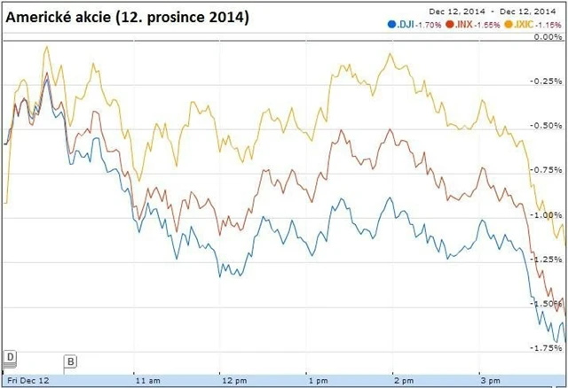 "Všichni jsou stále nervózní kvůli klesajícím cenám ropy, situace v eurozóně je také znepokojivá," říká John Carey z Pioneer Investment Management. "Data o spotřebitelské důvěře a čtvrteční čísla o maloobchodních tržbách byla solidní, obrázek domácí ekonomiky je tedy povzbudivý, ale někteří se domnívají, že zbytek světa stáhne USA dolů," dodává.