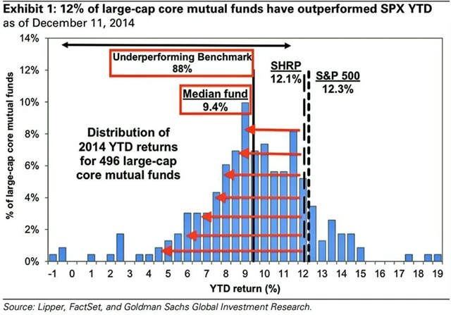 "Volatilita na trzích přispěla k tomu, že byl letošní rok pro manažery velmi obtížný," napsal Kostin v poznámce klientům. "Pouze 12 % fondů investujících do firem s velkou tržní kapitalizací od začátku roku předčilo index S&P 500, což je nejmenší podíl od roku 1997."