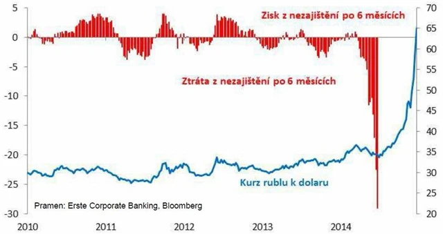 Podívejte se na graf, který porovnává kurz rublu a výnos ze spekulace na to, že rubl neoslabí. Spekulovat, tedy nezajišťovat kurz rublu, se vyplácelo. A najednou se to pekelně nevyplácí. A to ještě nevíme, kdy a na jakém kurzu současná rublová krize skončí. Rizika na finančních trzích je dobré řešit dříve, než když jsou na prvních stránkách novin a v hlavním vysílacím čase CNBC.