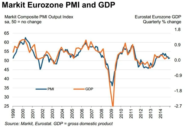 Index nákupních manažerů v sektoru služeb v eurozóně v prosinci vzrostl na 51,6 bodu z listopadových 51,1 bodu. Předběžná data počítala s tím, že index vzroste na 51,9 bodu. Kompozitní index se zvýšil na 51,4 bodu z 51,1 bodu v listopadu, podle předběžných dat však měl vzrůst na 51,7 bodu. Dříve zveřejněná zpráva o situaci ve zpracovatelském sektoru ukázala, že zpracovatelský sektor opět mírně expanduje poté, co v listopadu téměř stagnoval - index vzrostl na 50,6 bodu z listopadových 50,1 bodu, čekalo se však 50,8 bodu.