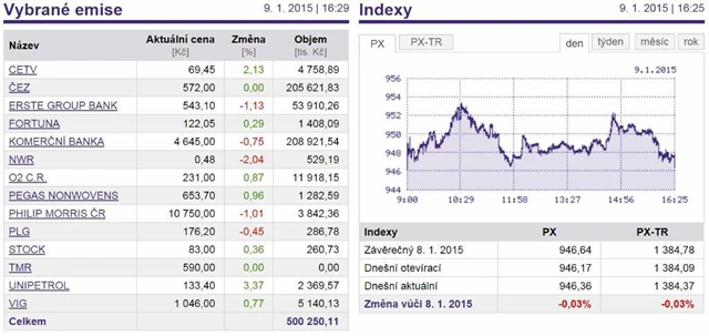 Index PX v pátek klesl o 0,03 % na 946,36 bodu.