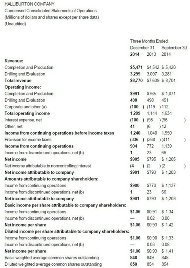 Výsledky Halliburton ve 4Q: Zisk na akcii 1,19 USD (odhad: 1,10 USD), tržby: 8,77 miliardy USD (odhad: 8,79 miliardy USD) Redakce IW20. 1. 2015 | 13:06Výsledková sezónaZdroj: BloombergAktualita pro rok 2026Americké akcieVýsledková sezónaRedakce IW Další články autoraTOP 10 článků týdne: Zapomínání, kontrariánské pohledy a smutný příběh RSBCOčekávané výsledky světových firem v týdnu od 15. prosince: Micron Technology, Nike, Carnivalmmcité v třetím čtvrtletí utržila přes 300 milionů Kč. EBITDA spadl kvůli výkyvům v poptávce DoporučujemeRopa na okraji propasti: JPMorgan varuje před kolapsem cenRopa NVIDIA má problém s hotovostí. Neví, kam s níTrhy nejsou kasino: 5 kroků na cestě k úspěšnému investováníPonaučení pro investory Aktualitydnes | 0:00Co musíte dnes vědět (17. prosince): Ještě bohatší díky IPO16. 12. | 22:30Úterní obchodování na burzách v USA skončilo smíšeně. Akcie Tesly uzavřely na novém maximu16. 12. | 18:00Evropské akciové indexy v úterý sestoupily, znovu se nedařilo cenným papírům zbrojovek16. 12. | 16:56Ceny ropy klesly na nejnižší úrovně od května a míří k nejhoršímu roku za sedm let16. 12. | 16:45Pražská burza také v úterý zpevnila, dařilo se akciím bank16. 12. | 16:26Velcí investoři hromadí bitcoin nejrychleji za 13 let16. 12. | 16:06USA: Podnikové zásoby v září meziměsíčně vzrostly o 0,2 % (odhad: +0,2 %, srpen: stagnace), meziročně byly vyšší o 1,2 %16. 12. | 15:51USA: Kompozitní PMI podle předběžných dat S&P Global v prosinci klesl na 53 bodů (listopad: 54,2 bodu)16. 12. | 15:45Americké akcie v úvodu: Dow -0,11 %, S&P 500 +0,01 %, Nasdaq 100 +0,26 %16. 12. | 15:16Akcie Abivaxu letos zdražily o více než 1 400 procent. Firma míří k registraci léku16. 12. | 14:48Databricks získala přes 4 miliardy dolarů, její hodnota stoupla na 134 miliard USD16. 12. | 14:40USA: Maloobchodní tržby v říjnu meziměsíčně stagnovaly (odhad: +0,1 %, září: +0,1 %), meziročně vzrostly o 3,5 %Zobrazit všechny aktuality