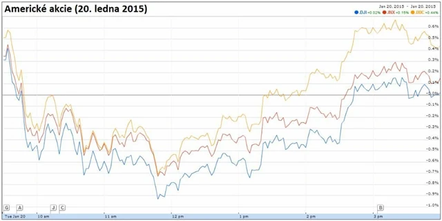 Kvartální hospodářské výsledky poslaly do červených čísel také cenné papíry společnosti Johnson & Johnson (-2,64 %). Firma před začátkem obchodování na amerických burzách oznámila, že v posledních třech měsících loňského roku hospodařila s upraveným ziskem 1,27 USD na akcii při tržbách 18,25 miliardy dolarů. Trh čekal upravený zisk 1,26 USD na akcii a tržby 18,55 miliardy dolarů. Zároveň společnost zveřejnila výhled svého hospodaření pro letošní rok. Za dvanáct měsíců by měla vydělat 6,12 až 6,27 USD na akcii. Analytici oslovení agenturou Reuters za rok 2015 čekají zisk 6,13 USD na akcii.