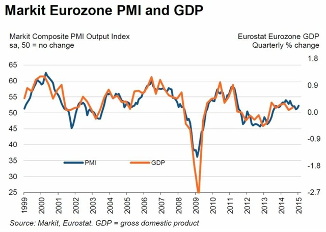 "Eurozóna do nového roku vstoupila v dobrém rozpoložení. Indexy nákupních manažerů ukazují, že tempo růstu aktivity ve výrobním sektoru i sektoru služeb dosahuje nejvyšších úrovní za posledních pět měsíců," napsal v komentáři hlavní ekonom společnosti Markit Chris Williamson. "Tempo růstu ekonomické aktivity v eurozóně sice není nijak závratné, pozitivní ale je, že více méně koreluje s vývojem hrubého domácího produktu společenství zemí platících eurem," dodal.