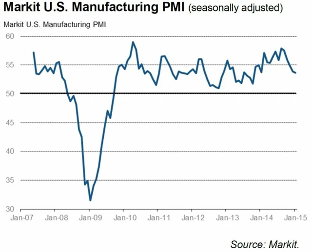 "Podmínky v amerických podnicích se na začátku roku zlepšily. Index nákupních manažerů sice v lednu kvůli zpomalení tempa přílivu nových objednávek klesl, poptávka ale zůstává nadále silná," řekl hlavní ekonom společnosti Markit Chris Williamson. "Podnikům navíc hrají do karet klesající ceny ropy, které jim snižují výrobní náklady," dodal.