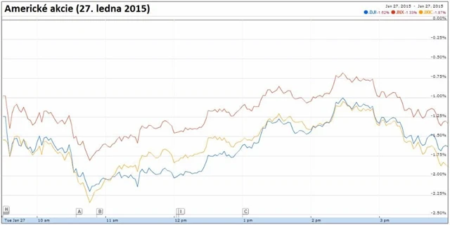 "Hospodářské výsledky amerických firem jsou negativně zatěžovány vývojem měnových kurzů a pokračujícím zpomalováním růstu světového hospodářství," řekl v telefonickém rozhovoru pro agenturu Bloomberg Chad Morganlander, manažer ve společnosti Stifel, Nicolaus & Co. "Příznivě v úterý navíc nedopadly ani prosincové objednávky zboží dlouhodobé spotřeby, což vývoji na trzích nijak nepřidalo."