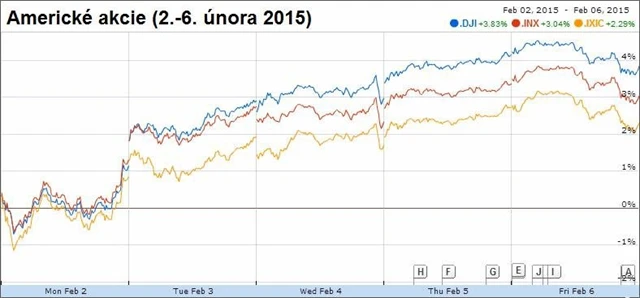 Počet pracovních míst v USA vzrostl v lednu solidním tempem a v předešlých dvou měsících navíc vzniklo mnohem více pozic, než statistici předtím uváděli. Trh zpočátku na údaje reagoval váhavě, protože silné oživování trhu práce přibližuje dobu, kdy americká centrální banka začne zvyšovat úrokové sazby. Analytici podle agentury Reuters předpokládají, že k tomu přistoupí možná už v polovině roku. Tento faktor nakonec v závěru seance převážil, když investoři navíc zřejmě realizovali část silných týdenních zisků.