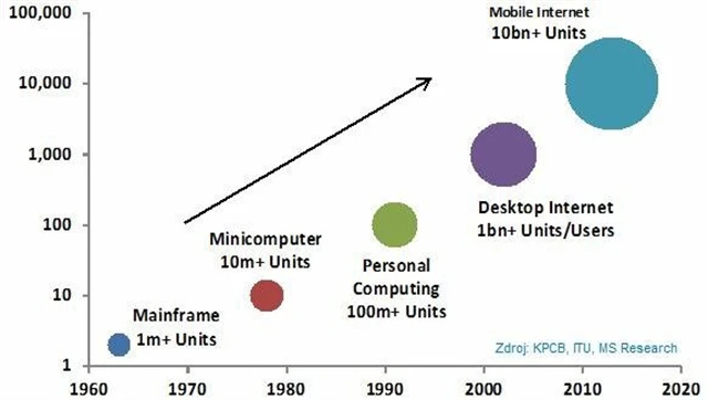 Postupný pokrok ve využívání počítačů byl podmíněn především klesajícími náklady a zlepšováním funkcí. Historicky každá nová vlna komputerizace (například od osobních počítačů k tabletům a mobilům) zasáhla přibližně desetkrát více uživatelů než vlna předchozí. Zatímco současná vlna mobilního internetu stále ještě probíhá, prozíraví investoři hledí vpřed s otázkou, co přijde příště.