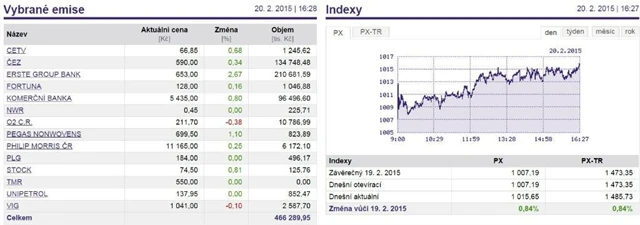 Index PX v pátek zpevnil o 0,84 % na 1 015,69 bodu.
