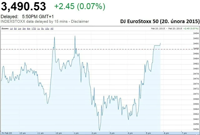 Evropské akcie v závěru týdne mírně posílily. Trhy věří, že díky pátečním jednáním ministrů financí eurozóny bude dosaženo dohody, nebo přinejmenším pokroku v oblasti řeckého dluhu.