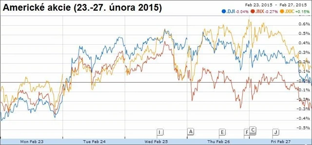 Za poslední únorový týden tak akcie skončily zhruba na nule (Dow -0,04 %, S&P 500 -0,27 %, Nasdaq +0,15 %). Za celý únor ovšem Nasdaq posílil o 7,08 %, Dow o 5,64 % a S&P 500 o 5,49 %.