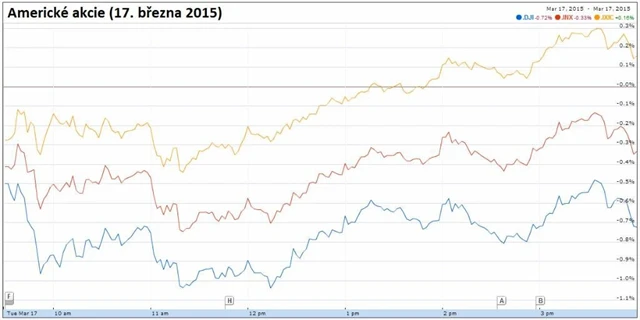 Ve středu ve Spojených státech skončí dvoudenní zasedání měnového výboru americké centrální banky. Investoři nečekají, že by Fed rozhodl o zvýšení základní úrokové sazby ze současné nuly až 0,25 %, kde ji drží šest let. Očekávají však, že by šéfka Fedu Janet Yellenová na tiskové konferenci po zasedání banky ze svého vyjádření mohla vypustit frázi o tom, že bude Fed ohledně zvyšování sazeb trpělivý.