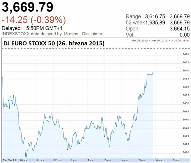 Hlavní evropské burzy ve čtvrtek skončily v červených číslech. Investory znejistilo zejména zvýšené geopolitické napětí na Arabském poloostrově, kde Saúdská Arábie a její spojenci z regionu zahájili vojenskou operaci proti šíitským povstalcům.