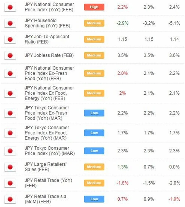 Spotřebitelská inflace v Japonsku v únoru klesla na 2 % z lednových 2,2 %, čekal se pokles jen na 2,1 %. Po očištění o efekt zvýšení spotřební daně loni v dubnu index spotřebitelských cen zůstal v únoru poprvé od května 2013 nezměněn (leden: +0,2 %).