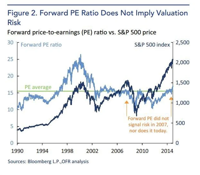 Často se mluví o tom, zda a do jaké míry je trh s akciemi již ve fázi takzvané bubliny, tedy cen výrazně vyšších, než by odpovídalo fundamentu. Sleduje se ocenění akcií, nejčastěji na základě ziskovosti firem, případně očekávané ziskovosti. A právě tento indikátor naprosto zklamal před poslední velkou krizí.