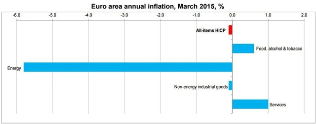 V deflaci jsou země platící eurem od loňského prosince. Je to podruhé v její historii. Lednový meziroční pokles cen o 0,6 % byl největším propadem od července 2009, kdy ceny klesaly od června do října. Inflace v eurozóně je ale už od října 2013 pod hranicí jednoho procenta, kterou ECB označuje za nebezpečnou zónu.