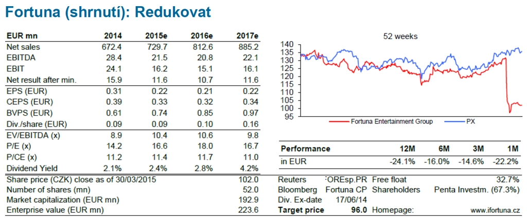 Česká spořitelna snižuje investiční doporučení na akcie Fortuny na "redukovat"